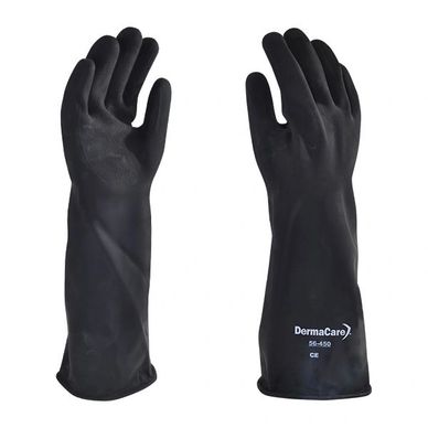 Guante de hule natural (látex) negro de 18" de largo 45 cms, con puño rolado. Guante ideal para el manejo de ácidos cáusticos, el látex ofrece resistencia a gran variedad de agentes químicos en general. Su largo de 45 cms. ofrece protección adicional al antebrazo.